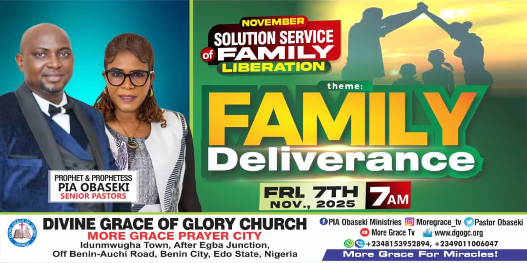 We are honoured to extend a special invitation to you for the NOVEMBER 2025 SOLUTION SERVICE of FAMILY LIBERATION, proudly sponsored by PIA Obaseki Ministries, and featuring the esteemed Prophet P.I.A. Obaseki.